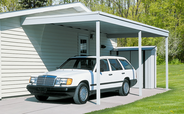 The Free Standing Carport and Patio Cover from Arrow is a newly re-designed carport and multi-use shelter for maximum protection against the elements! This carport features a galvanized steel roof with horizontal panels, and an industrial steel frame that has been powder coated to resist corrosion and rust.